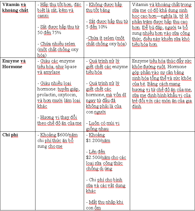 Chuyên Trang Về Sữa MẹBảng so sánh giữa sữa mẹ và sữa công thứcWebcuameApr 20, 20141ShareDịch và soạn lại từ Nguồn: http://www.askdrsears.com/topics/feeding-eating/breastfeeding/why-breast-is-best/comparison-human-milk-and-formula