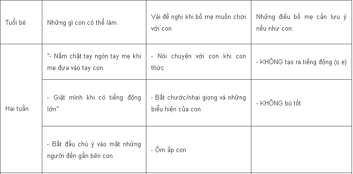 Nuôi Dạy Con Những cột mốc vận động phát triển của trẻ từ 2 tuần đến 3,5 tuổiWebcuameJun 29, 20141ShareTổng kết sau đây trích từ Sổ theo dõi Sức khỏe và Phát triển của Ron, do tiểu bang Victoria ban hành